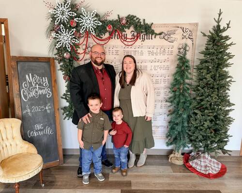 He and his wife Mallorie, both Alma High School graduates, got married in 2016 and have two young sons, Barrett and Bodie. Though he went to school and graduated from Alma, J.D. has lived most of his life not 3 minutes from the church here in Cedarville. J.D and Mallorie both have deep roots in the River Valley and are thankful to serve in their home community. J.D. enjoys reading, doing anything outdoors, and watching football. His favorite conversations usually involve his family, theology, and politics.